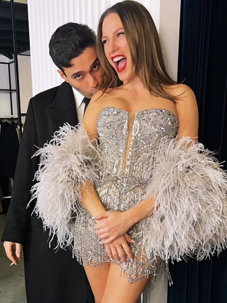 Serenay Sarıkaya ve Mert Demir, davet alanında verdikleri gülümseyen pozlarla adeta aşklarını ilan ettiler. Çiftin sosyal medya hesaplarında paylaşılan fotoğraflarda, birbirlerine olan ilgilerini ve güvenlerini samimi bir şekilde gösterdikleri görüldü. Davetteki şıklıkları ve uyumları, takipçilerinden “çok yakışıyorlar” gibi övgüler aldı. Ayrıca, Serenay Sarıkaya’nın zarif ve şık kıyafetiyle dikkat çekerken, Mert Demir’in modern tarzı da gözlerden kaçmadı.