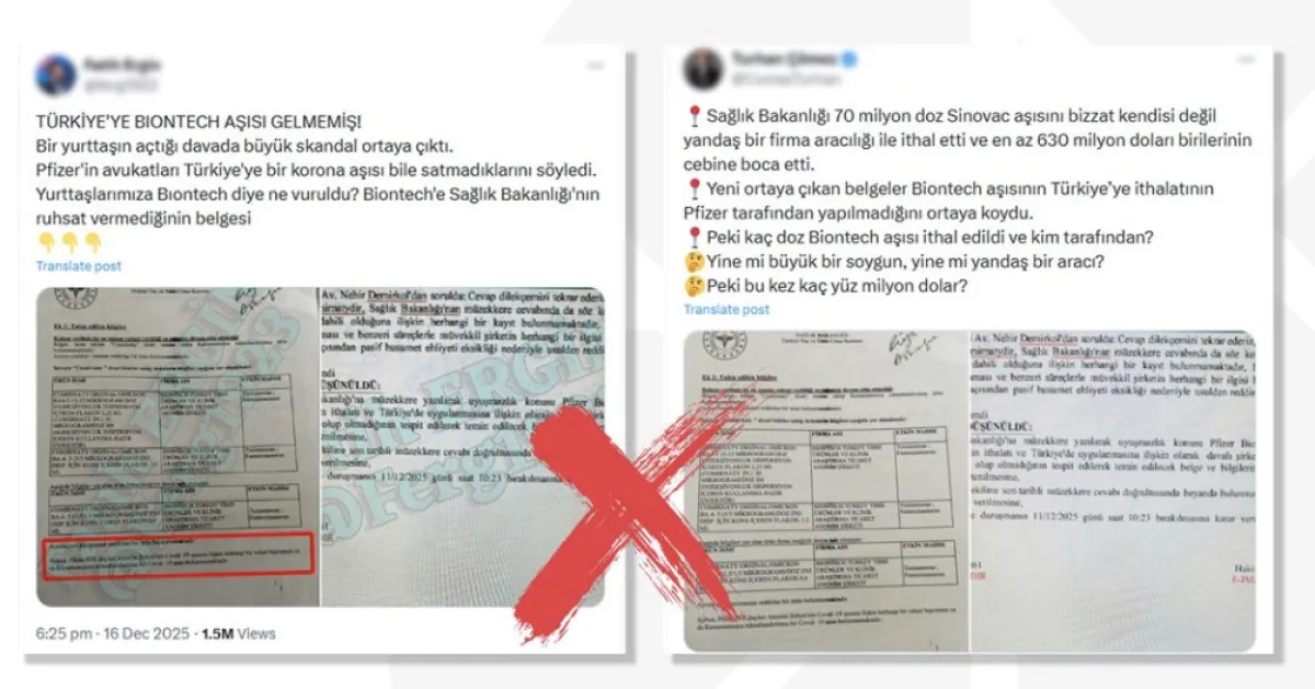 DMM açıklamasına göre, söz konusu dezenformasyonun kaynağında bir mahkeme sürecindeki savunma metninde geçtiği iddia edilen yanlış ifade olduğu ileri sürüldü. Bu metne ulaşan bazı sosyal medya kullanıcılarının ‘Türkiye’ye hiç BioNTech aşısı gelmedi’ gibi gerçek dışı iddiayı yayımlaması, kısa sürede binlerce kişiye ulaştı ve söz konusu yalan hızla büyüdü.